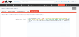 W ustawieniach sklepu, należy przejść do zakładki Konfiguracja i wybrać Integracje, a następnie Integracje własne. Następnie w sekcji Nagłówek strony należy wkleić kod czatu i zapisać zmiany.